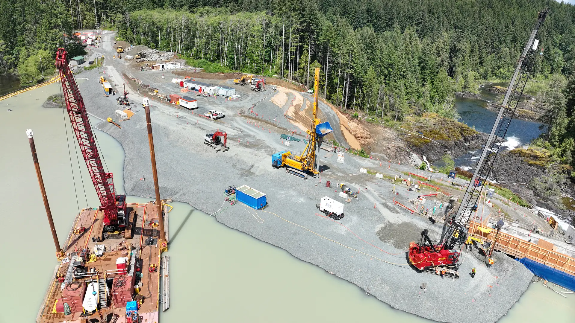 Campbell River, Kanada – An der malerischen Ostküste von Vancouver Island liegt Campbell River, bekannt als die „Lachs-Hauptstadt der Welt" und Heimat eines lebendigen Ökosystems. Hier arbeitet die staatliche BC Hydro aktuell an einem bedeutenden Projekt: der seismischen Aufrüstung des John-Hart-Damms – nachhaltig, sicher und lebensnotwendig zugleich. Denn der Damm leitet Wasser zur Stromerzeugung im John Hart Powerhouse, dient dem Hochwasserschutz und versorgt die Stadt Campbell River mit Trinkwasser aus dem John Hart Reservoir. BAUER Foundations Canada Inc., ein Tochterunternehmen der BAUER Spezialtiefbau GmbH, wurde mit der Ausführung einer neuen Sickerwassersperre im Hauptaufschüttungsbereich des Damms beauftragt.