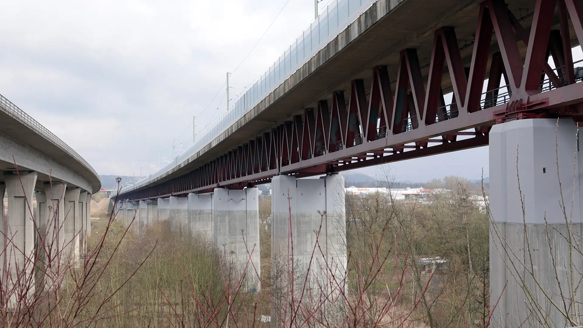 Rödental – Sie ist über 20 Jahre alt, hat insgesamt 14 Pfeilerköpfe und -füße und besteht aus einer 868 m langen Stahlverbundkonstruktion: die Eisenbahnüberführung Itztalbrücke. Die rund 30 m hohe Eisenbahnbrücke ist Teil der Schnellfahrstrecke durch den Thüringer Wald und verläuft zwischen den oberfränkischen Orten Rödental und Dörfles-Esbach. Das Problem: Risse an den Pfeilerköpfen durch eine beginnende Treibreaktion im Beton, die durch Feuchtigkeit zu Ausblühungen und Rissen am Betontragwerk der Pfeiler führt. Um die Standsicherheit der Itztalbrücke dauerhaft zu sichern und den Wasserzutritt zu unterbinden, wurde die SPESA Spezialbau und Sanierung GmbH gemeinsam mit den Stahlbau-Experten der SCHACHTBAU NORDHAUSEN GmbH mit umfangreichen Betonsanierungs- und Stahlbauertüchtigungsmaßnahmen betraut. Nach rund einem Jahr Bauzeit konnte der Auftrag als Nachunternehmerleistung der DB Bahnbau Gruppe GmbH als Hauptauftragnehmer der DB InfraGO AG im Juni 2024 erfolgreich abgeschlossen werden.