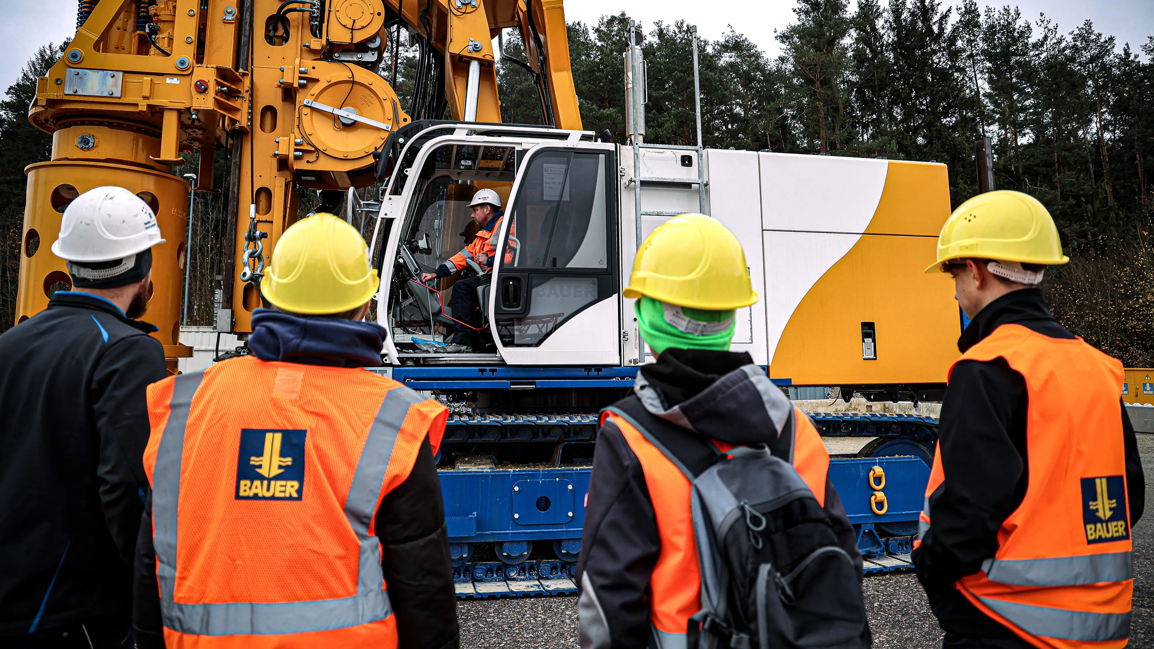 Eine Besichtigung im Werk Aresing durfte natürlich auch nicht fehlen. Bauer-Mitarbeiter Christian Saumer zeigte den Schülern die verschiedenen Montagebereiche sowie das Testgelände. Anschließend ließ er sie in einem Großdrehbohrgerät Platz nehmen, das sie sogar bedienen durften – mit Sicherheit ein Highlight an diesem Tag.